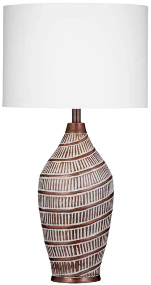 The copper base with white patterned painting provide an earthy art deco style