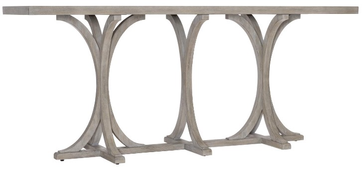 Refined arcs and straight lines come together in a dynamic sweep of shape and tailored elegance in the Albion console tables three support pedestals. A soft finish and subtle woodgrain texture create the timeless ease of American style. There is a vintage feeling to the design, but with a thoroughly modern outlook.Read More