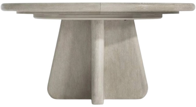 A play on shapes and textures crafts an unpretentious, chic style for the Arcadia dining table in clay finish. Rounded angles define intersecting planes for the base, which is cast in resin with a woodgrain pattern. Wire-brushed oak creates the circular top that can be expanded to an oval with the addition of one leaf.Read More
