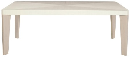 The Axiom dining table uses angular shapes and light, silky finishes to create a distinct style. The tabletop features a fancy face pyramid pattern in Linear White finish. Completing the clean, contemporary look, legs in a Linear Gray finish taper to the floor. Two 20" leaves create room for larger parties.Read More