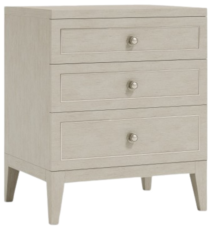 The Cornelia nightstand has a traditional design that is updated for modern living with brushed stainless steel metal inlays around its three drawers. Lines are sleek and refined, while the Nebbia finish gives the piece a more casual style. The design also includes two-port USB charging unit.Read More