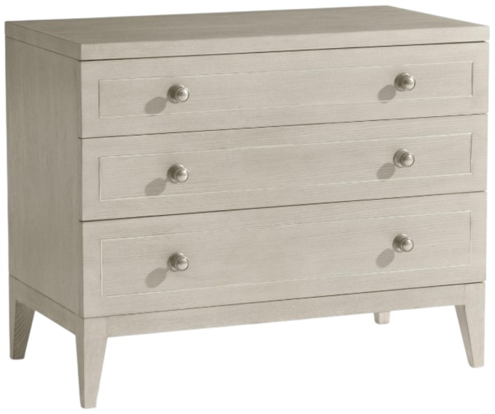 The Cornelia nightstand has a traditional design that is updated for modern living with brushed stainless steel metal inlays around its three drawers. Lines are sleek and refined, while the nebbia finish gives the piece a more casual style. The design also includes two-port USB charging unit.Read More
