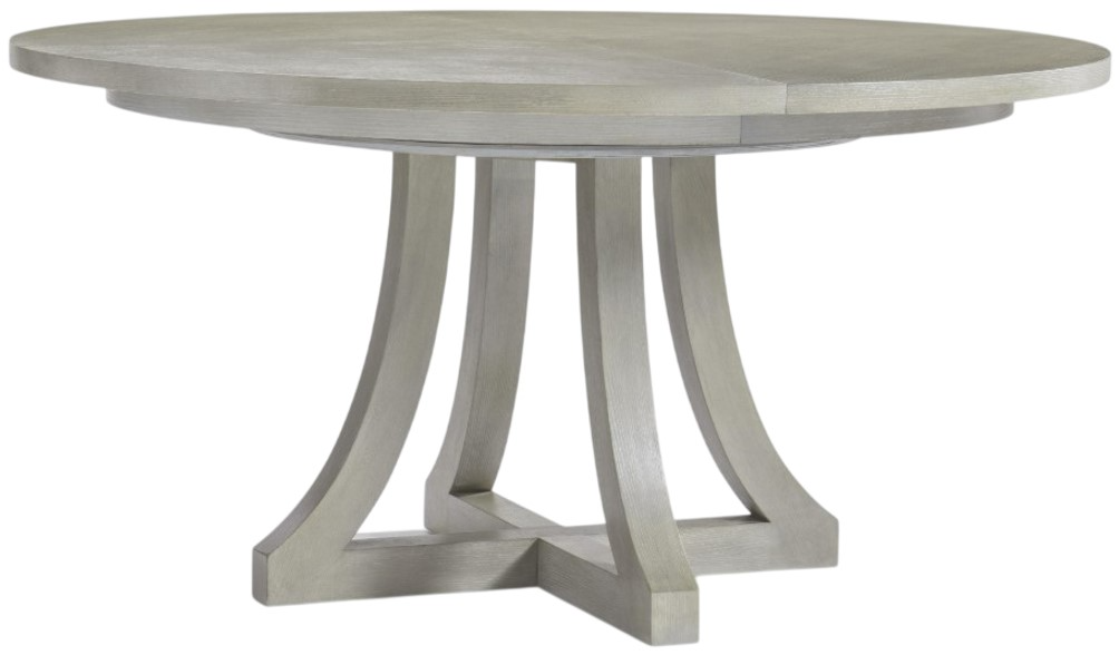 The gentle shape of four concave legs and a subtle grain pattern on the top offer a restrained elegance for the Cornelia dining table. The base curves up to support the round top, which can expand to an oval shape with the addition of a leaf.Read More