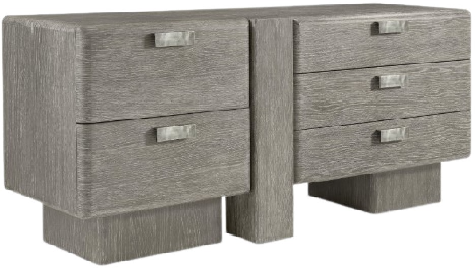 The Monolith dresser showcases perfect proportions that create a balance of modern and rustic styles. Two plinth bases support a bold case that is defined by rounded corners and the puma finish. Six soft-close drawers are highlighted by geometric cast aluminum hardware in graphite finish.Read More