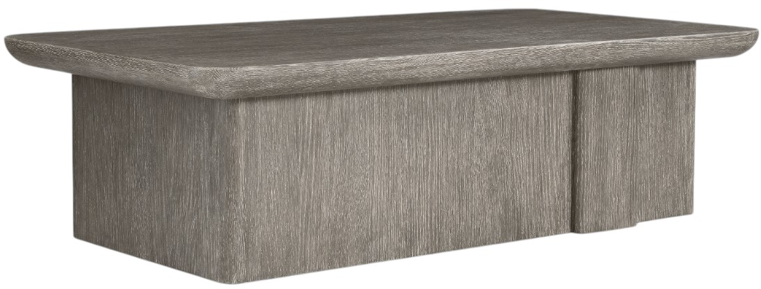 The Monolith cocktail table perfectly balances curves and lines with softly rounded corners on the top and the plinth base. A unique panel extends from the base, offering bold detail. Deep wire-brushing creates beautiful texture in the Puma finish.Read More