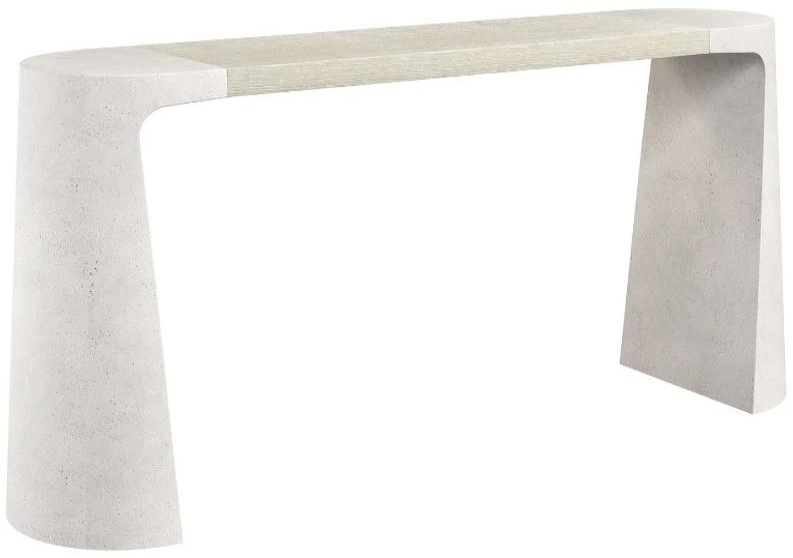 A bold structure is constructed of wood and concrete for the Prado console table. Angled and semi-circular legs make a sleek statement in cast glass-reinforced concrete in Buff finish. They support a center wood top in the Tawny finish.Read More