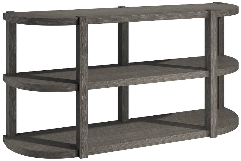 The Prado console table takes an uncluttered and modern approach for its design. The top and two shelves are supported by five vertical posts, all in a rich Porcini finish. The curved fronts of the shelves provide a beautiful counterpoint to the straight lines of the supports.Read More