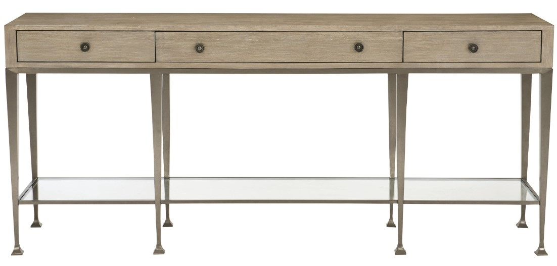 The Santa Barbara console table offers a fresh take on a traditional form. The simple, elegant design features a welded stainless steel base with eight slender, tapered legs with square feet. Oak veneers have been wire-brushed and cerused, which gives them subtle textures and lighter strokes of color in the grain.Read More