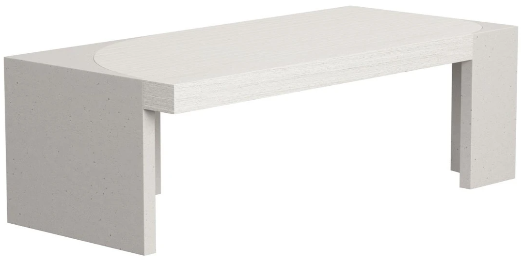 The modern Stratum cocktail table finds its style in a precise geometry of angles and curves. A rectangular top in the mist finish is supported by corner posts in the fossil faux stone finish with curved interiors.Read More