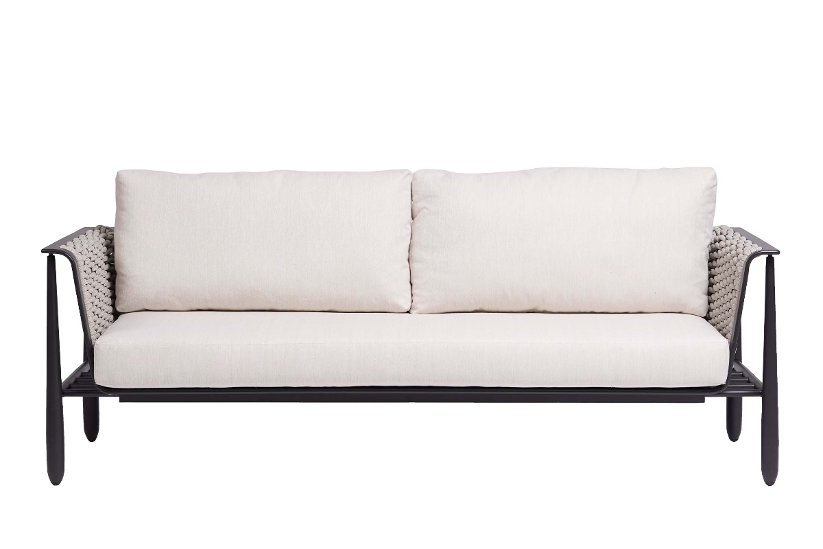 Get comfy and cozy in your outdoor space using the Ratana Diva Sofa. Host your friends and family comfortably on this ultra-modern striking sofa. A durable and weather-resistant powder coated aluminum frame with a snow-white finish is supported by baseball-style legs, offering a pristine aesthetic with minimal wear and tear. The backrest and armrests are crafted from an attractive and detailed beige Durastrap™ weave for a unique embellishment, along with deep plush cushions for added ease and comfort.Read More