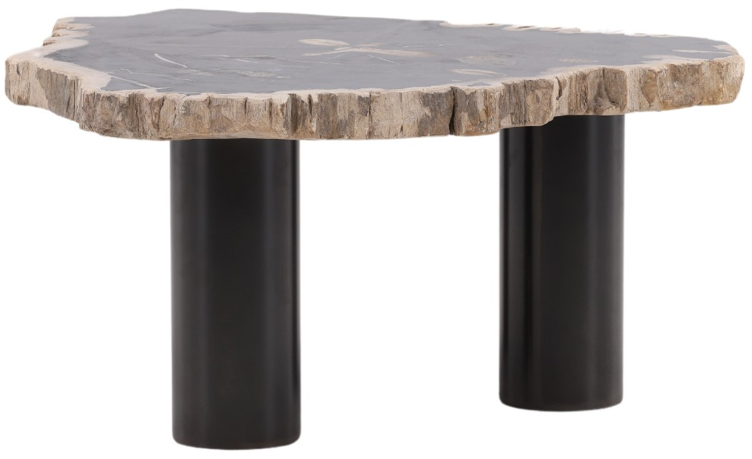 The Dovetail Furniture Darnell coffee table features a natural petrified wood top paired with a sleek black iron base. Each piece showcases unique patterns and textures, adding organic elegance to any living space. Its blend of earthy materials and modern design makes it a standout centerpiece.Read More