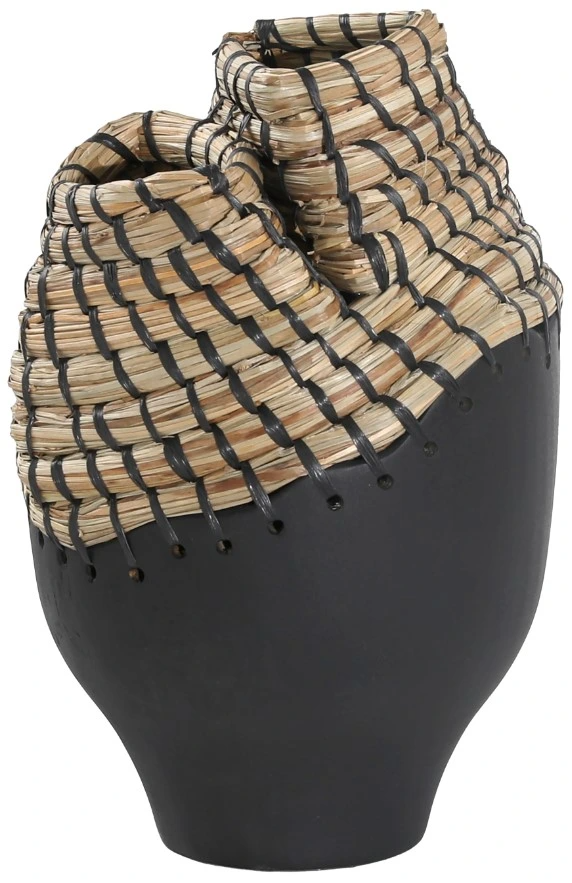 The Dovetail Furniture Fannie Vase features a bold black and natural design crafted from teak wood and seagrass. Its organic texture and earthy tones bring warmth and style to any space. Ideal as a decorative accent or for floral displays, it blends sustainability with artistic flair for a timeless statement.Read More