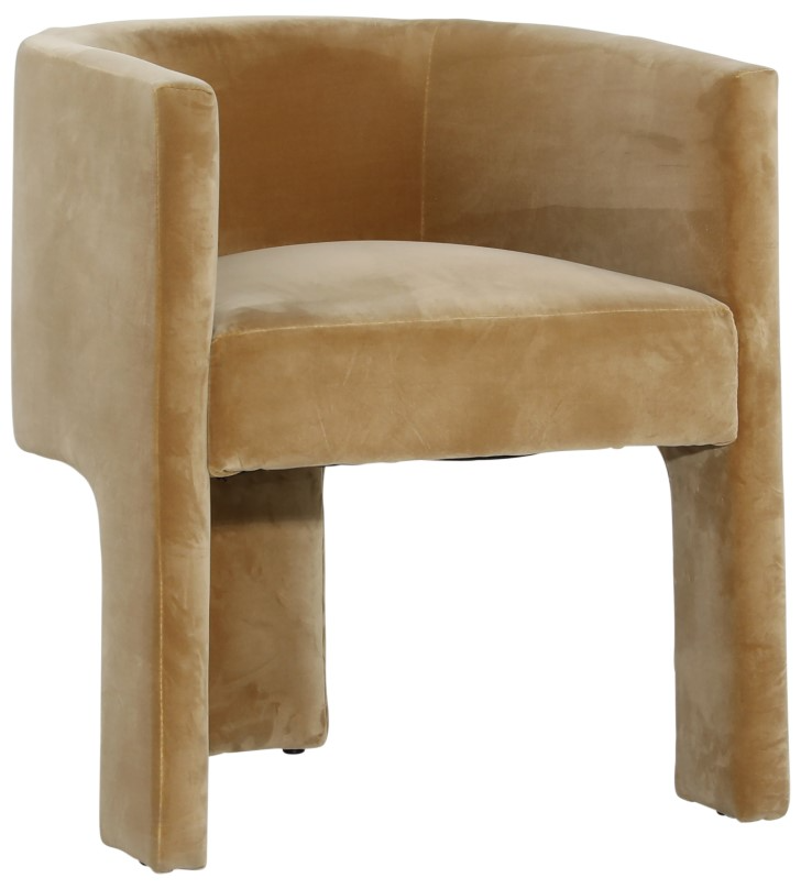 The Dovetail Furniture Olimpia Dining Chair in camel features plush polyester velvet upholstery and a sturdy pine wood frame, combining comfort with durability. Its warm hue and sleek, low-profile design add a touch of sophistication to any dining space—an inviting blend of soft texture and timeless elegance.Read More