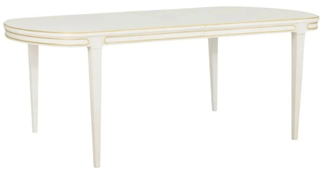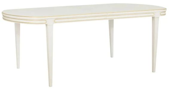 Taking a modern approach to traditional design elements, our Camille dining collection includes a dining table, credenza, and bar cabinet. Crafted from rubberwood solids and finished in Linen with a contrast highlight stripe in antique pewter.Read More