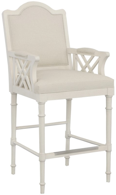 Inspired by a traditional Chippendale chair, the back of the unique piece features a soft arch and upholstered back for comfort and customization of fabric. This barstool would be a great addition to a residential or community dining room or game room.Read More