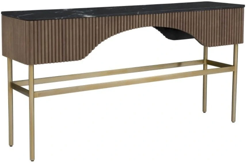 The Fairfield® Dimitri black console table showcases modern sophistication with its sleek black top and striking aged gold base. Its clean lines and metallic contrast create a bold, luxurious statement—perfect for entryways, living rooms, or stylish accent spaces.Read More