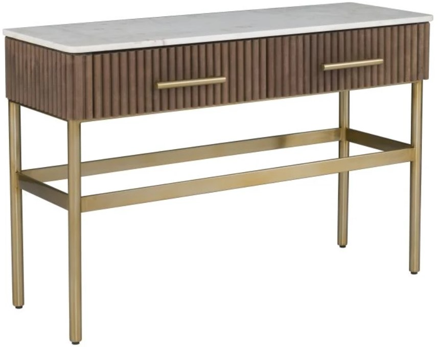 The Fairfield® Dimitri console with white marble top showcases contemporary elegance with its rich kafe finish and smooth white marble surface. Its slim profile and refined design make it ideal for entryways or living spaces, blending beauty and functionality seamlessly.Read More