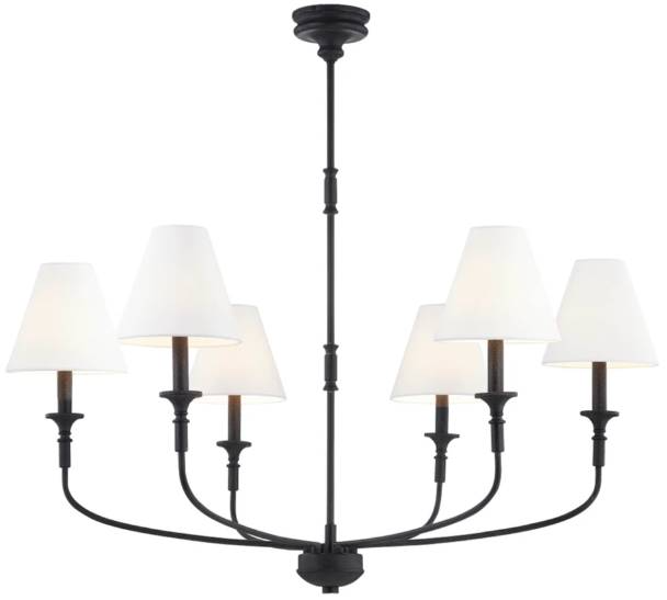 The Barton black 6-light chandelier exudes timeless elegance with its sleek black finish and intricate design. Crafted with precision, it illuminates any space with grace and sophistication. Its six lights radiate a warm, inviting glow, adding a touch of refinement to any room decor.Read More