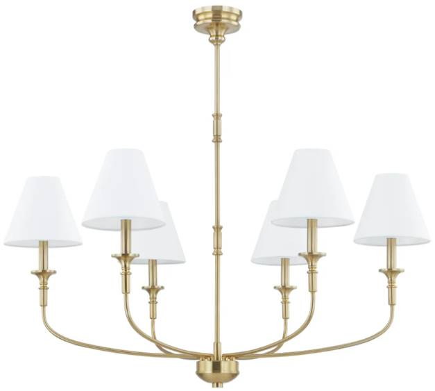 The Barton gold 6-light chandelier exudes elegance with its intricate design and shimmering gold finish. Crafted with meticulous attention to detail, it features six gracefully curved arms adorned with sleek candle-style lights, casting a warm and inviting glow. This stunning centerpiece adds timeless sophistication to any space.Read More
