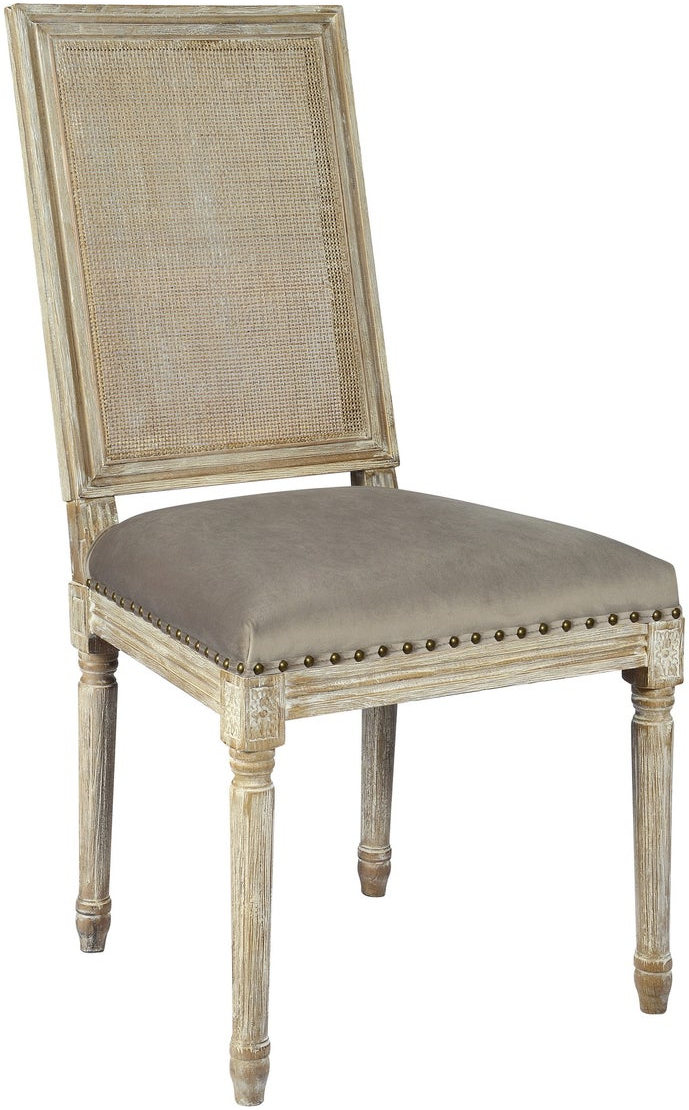 | Chair Features | Distressed Look, Upholstered, Armless, Nailhead Trim |