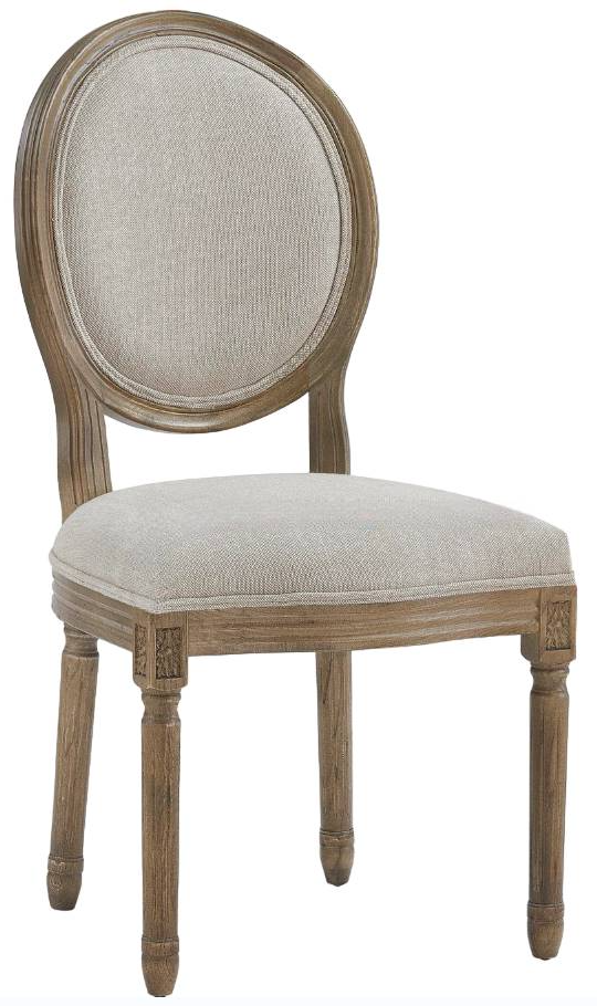 Featuring a soft, neutral sand linen upholstery, this chair adds a touch of elegance to any dining or living space. The unique round-back design provides both support and visual interest, making it a standout piece.Read More