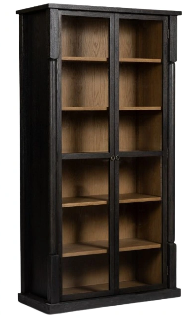 Made from oak veneer with a deep charcoal finish, this spacious cabinet delivers ultimate storage, including six shelves. Partially turned detailing on the front posts adds a design-forward finishing touch.Read More