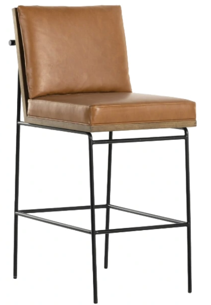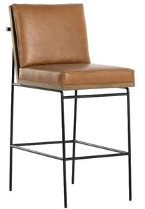 Crisp and clean, with natural panache. Slim, black-finished iron frames a floating ladderback of amber-finished oak and faux leather seating. Rear handle detail adds a fashionable finishing touch. It offers a stylish addition to any kitchen or bar area, blending modern aesthetics with classic charm. Perfect for everyday use.Read More