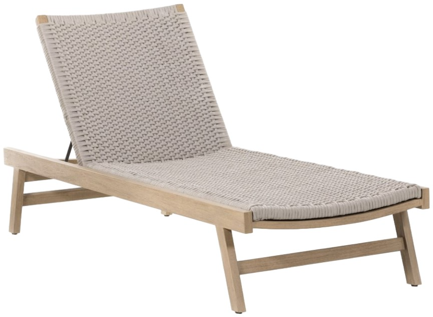 For a texture-driven take on the outdoor chaise, brown FSC-certified teak forms a sleek, adjustable frame for thick, handwoven rope in an inviting grey. Cover or store indoors during inclement weather and when not in use.Read More