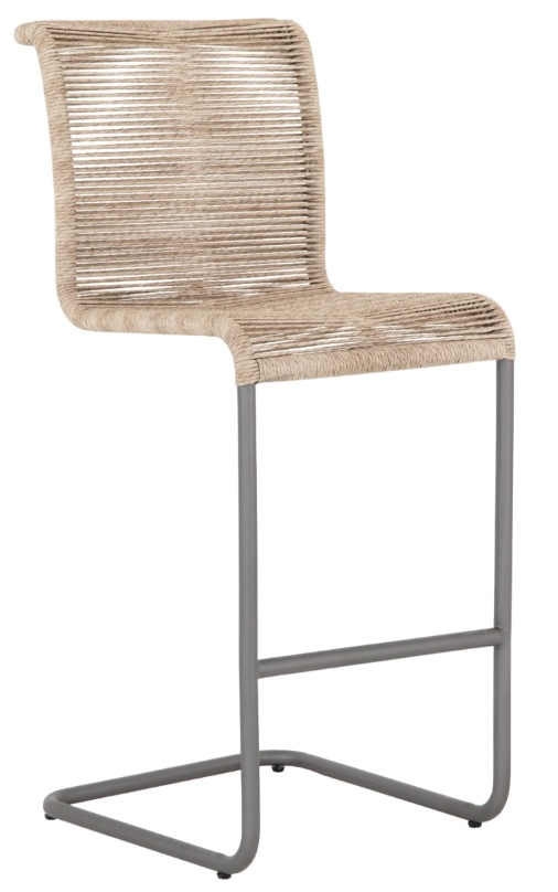 Attractive curvature summons a sit. A slim, gunmetal-finished iron frame supports woven all-weather wicker seating in a vintage white, for a textural twist on cantilever-style bar seating. Cover or store indoors during inclement weather and when not in use.Read More