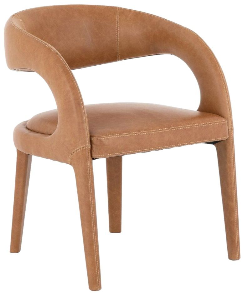 Strike a pose. Well curved and finely sculpted, butterscotch-colored top-grain leather exclusive to Four Hands makes for a unique and shapely addition to the modern dining room. Make a bold statement by incorporating this chair into your home.Read More