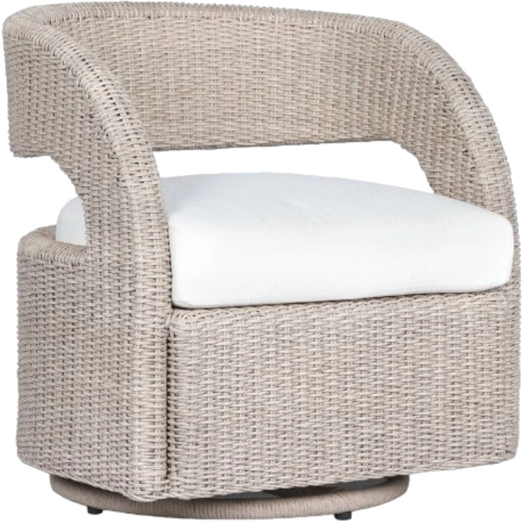 Strike a pose. This popular barrel-back shape with a cutout frame takes its place outdoors with a 360-degree swivel. Updated with a woven frame and a seat cushion in 100% olefin, known for its UV-resistant, water-repellent and quick-drying abilities.Read More