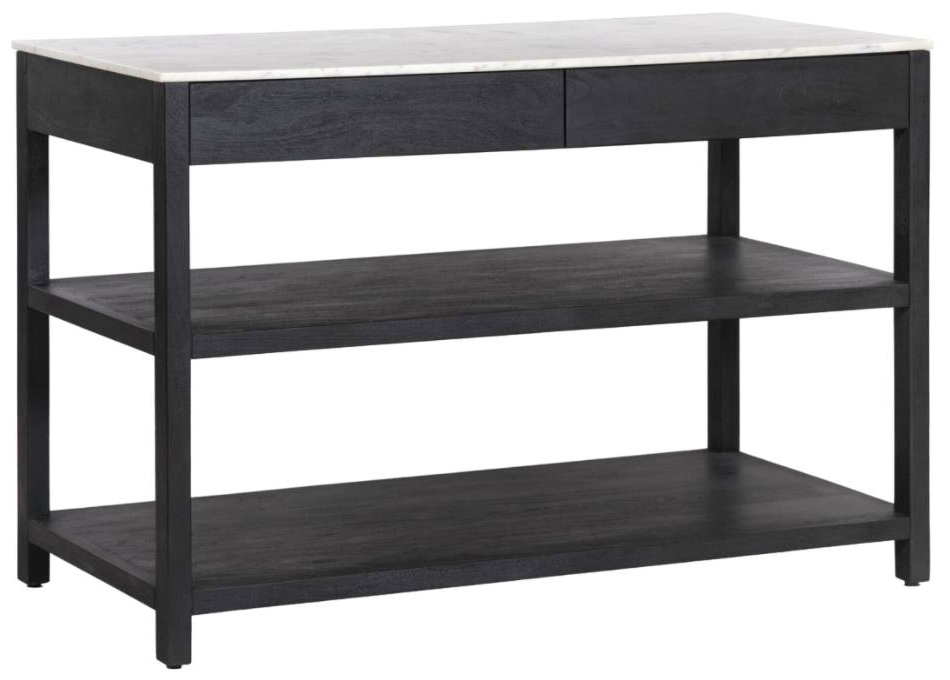 Create style and surface space with a kitchen island made from smoked acacia and solid white marble. Roomy open shelving offers ample options for storage and display, while four drawers keep frequently used items within reach.Read More