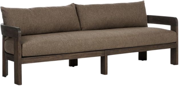 Rich brown upholstery and FSC®-certified teak framing form a simple barrel back outdoor sofa, complemented by softened edges and a fluid shape for a classic look. Cover or store inside during inclement weather and when not in use.Read More