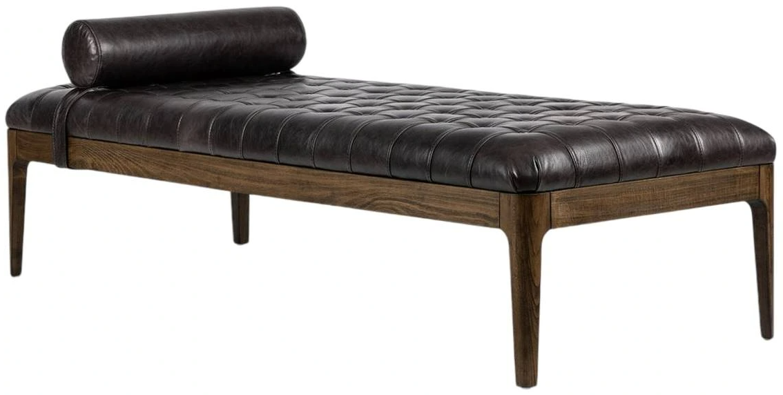 With deep, dramatic tufting and removable bolster pillow, top-grain leather offers a plush place to sit, in an entryway or at the foot of a bed. Moderate seat height at 18.25".Read More