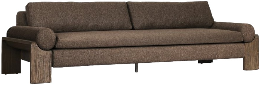 Heavy wood meets upholstery in this outdoor sofa. Loose bolsters cradle the fixed seat, adding a playful element to this bold, angular frame. The monochromatic look of textural deep brown fabric and saddle brown stained FSC®-certified teak ground the piece, accented with wide leg proportions and a box edge loose back pillow.Read More