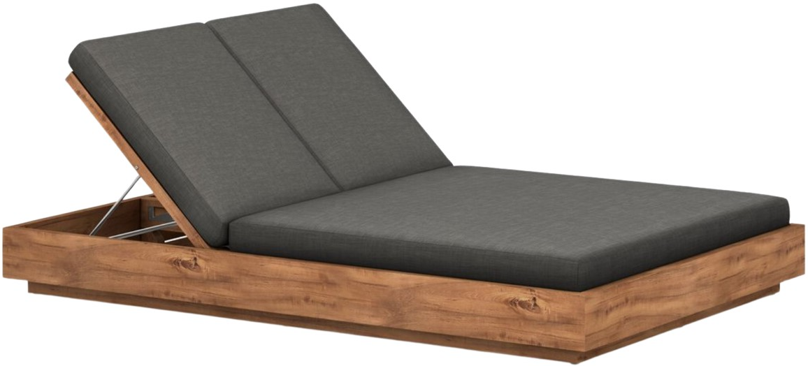 A slim, stylish profile prime for double lounging. Boxed base of FSC-certified teak frames durable, outdoor-friendly cushioning in an inviting charcoal. Adjustable backs and back pillows offer individual comfort and ease.Read More