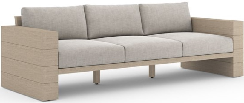 Wide planks of washed brown teak offer clean, substantial framing for UV-resistant and water-repellent Sunproof fabric in a stone grey. Incorporate this into your outdoor to give your space a refined touch.Read More