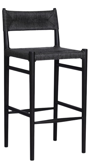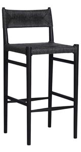 With a classic black finish, slim, tapered teak frames this woven all-weather wicker bar stool
