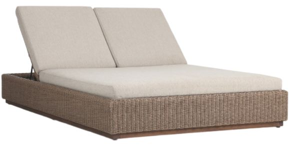 A slim, stylish profile made for lounging. A woven box base frames durable, outdoor-friendly cushioning in soft buff. An adjustable back offers personalized comfort, while a wooden plinth elevates this sleek design. Cover or store indoors during inclement weather and when not in use.Read More