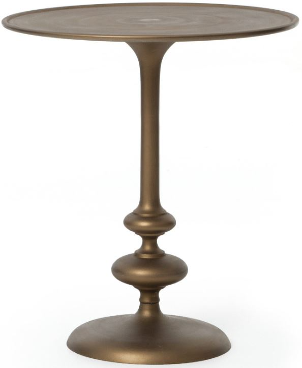 An elegant accent. Textural cast aluminum finished in matte brass adds movement to the pedestal table. Sized to nestle beside a sofa or between two chairs. Crafted with premium materials, creating a focal point in any space.Read More