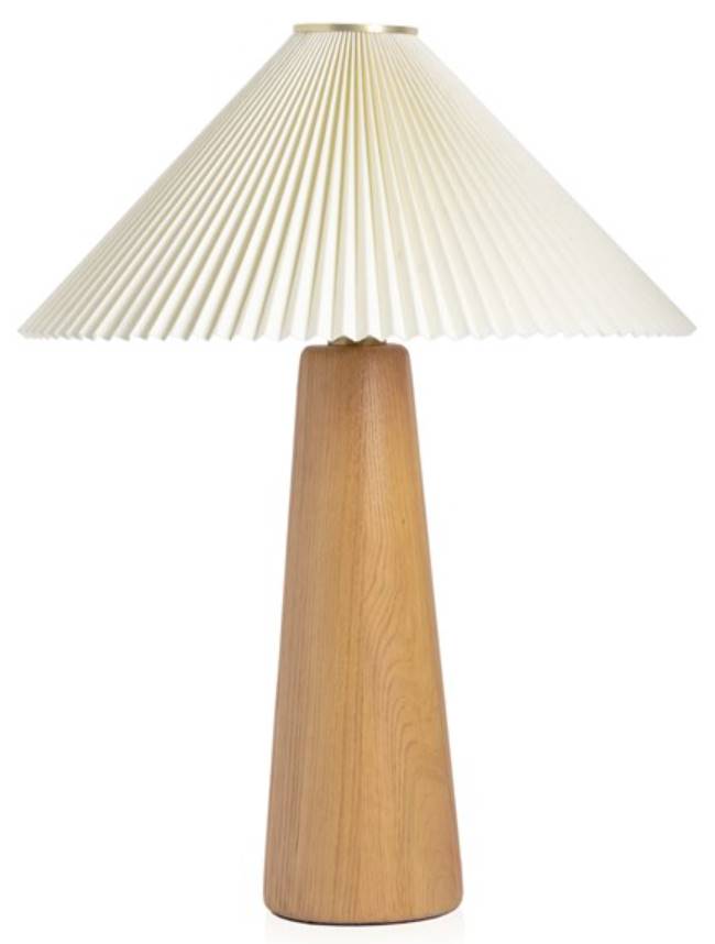 Modern minimal meets traditional. A tapered wood table lamp base is topped with a design-forward pleated shade. This table lamp from Four Hands will definitely gives an inviting look to your room.Read More