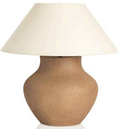 Sculpted like a vintage vase, the ceramic lamp has a dark, textured sand finish for organic character. Topped with a tapered linen shade in a versatile ivory. Make a bold statement by incorporating this table lamp into your home.Read More