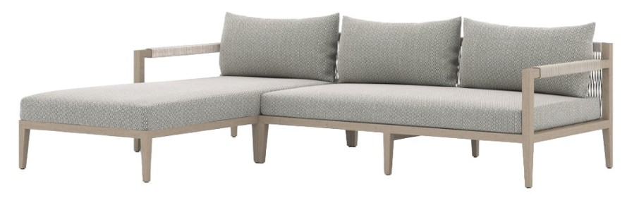 Modern materials ready a stylish silhouette for the outdoors. Solid FSC-certified teak forms a clean frame for UV-resistant, water-repellent Sunproof fabric on this two-piece outdoor sectional. Rope-wrapped armrests and rear cotton weaving add a textured finishing touch.Read More