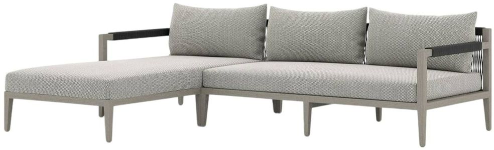 Modern materials ready a stylish silhouette for the outdoors. Solid FSC-certified teak forms a clean frame for UV-resistant, water-repellent Sunproof fabric on this two-piece outdoor sectional. Rope-wrapped armrests and rear cotton weaving add a textured finishing touch. Cover or store indoors during inclement weather.Read More