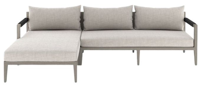 Modern materials ready a stylish silhouette for the outdoors. Solid FSC-certified teak forms a clean frame for UV-resistant, water-repellent Sunproof fabric on this two-piece outdoor sectional. Rope-wrapped armrests and rear cotton weaving add a textured finishing touch.Read More