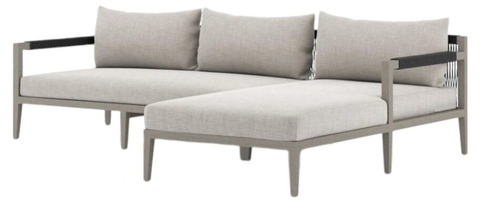 Modern materials ready a stylish silhouette for the outdoors. Solid FSC-certified teak forms a clean frame for UV-resistant, water-repellent Sunproof fabric on this two-piece outdoor sectional. Rope-wrapped armrests and rear cotton weaving add a textured finishing touch. Cover or store indoors during inclement weather.Read More