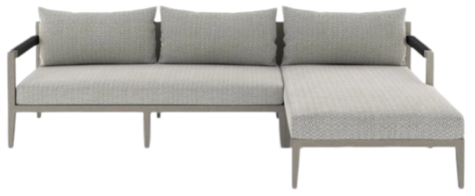 Modern materials ready a stylish silhouette for the outdoors. Solid FSC-certified teak forms a clean frame for UV-resistant, water-repellent Sunproof fabric on this two-piece outdoor sectional. Rope-wrapped armrests and rear cotton weaving add a textured finishing touchRead More