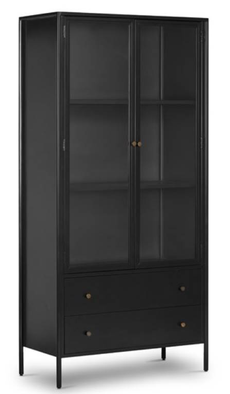 The glass-front doors allow endless storage and styling options, to showcase favorite books and treasures