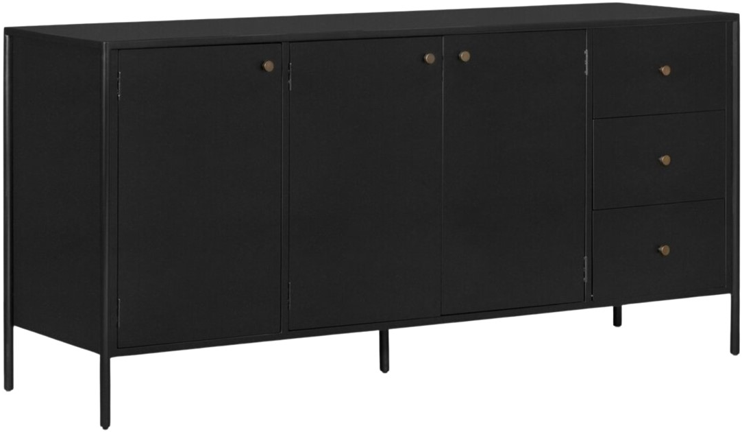 Bring a softened industrial look to the dining room with a simple black-finished iron console table featuring bronzed iron hardware for modernity. Three roomy drawers plus generous closed cabinetry offer ample storage area for table linens, serveware and more.Read More