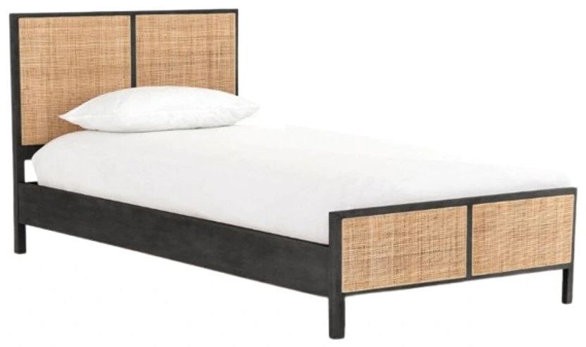 Black-washed mango frames inset woven cane, for a textural look with eye-catching contrast. Three-panel head and foot boards add a detail-rich touch. Box spring not required. Ideal for smaller rooms or guest spaces providing a practical and space-saving sleeping solution.Read More